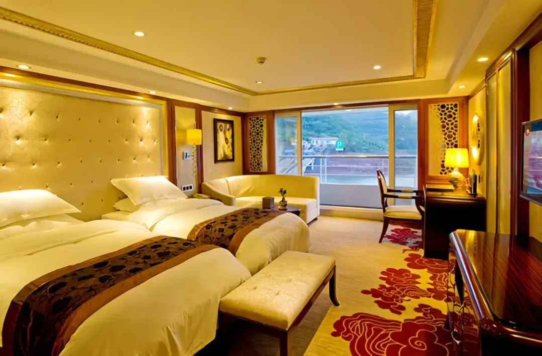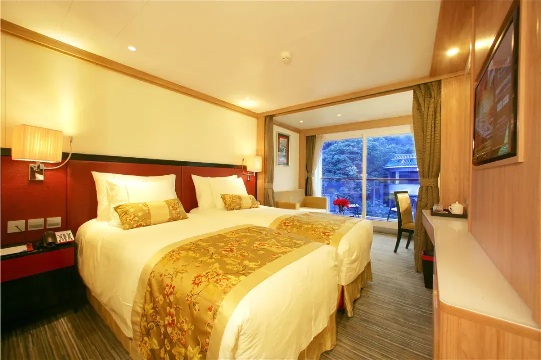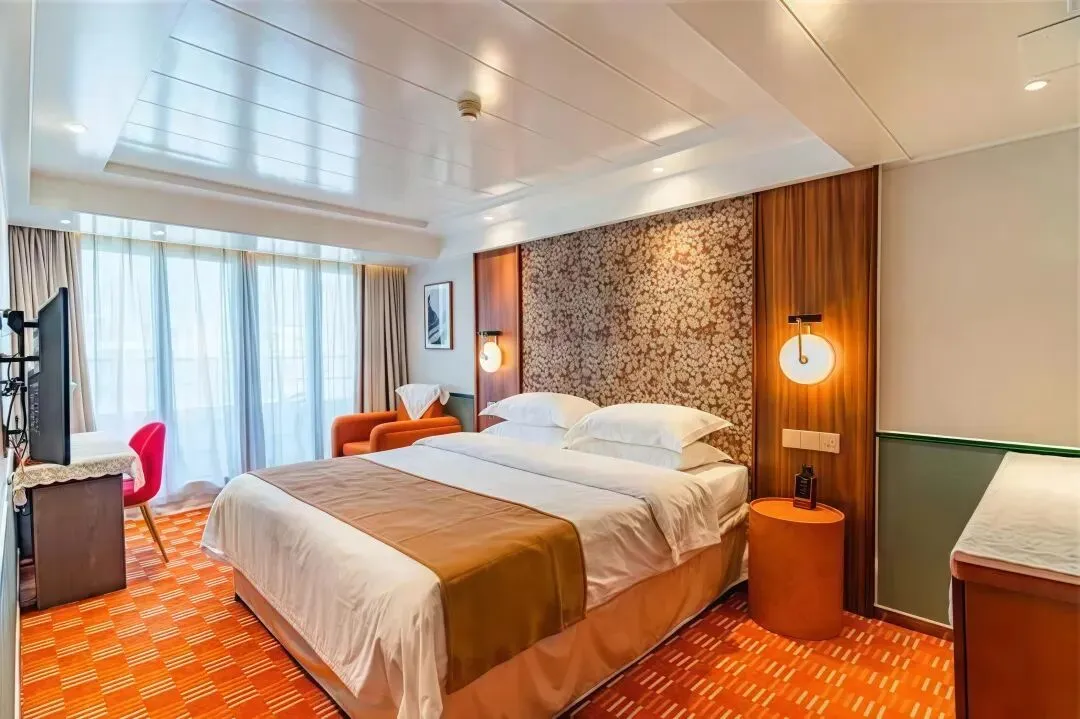 7层甲板、17000吨超大吨位带来极致开阔空间,所有房型都配备独立阳台,目之所及皆是青绿江景。