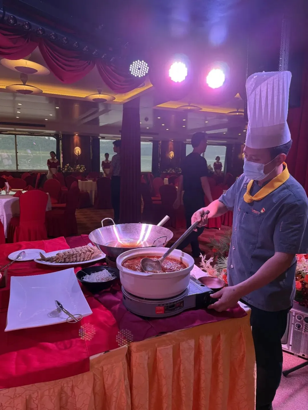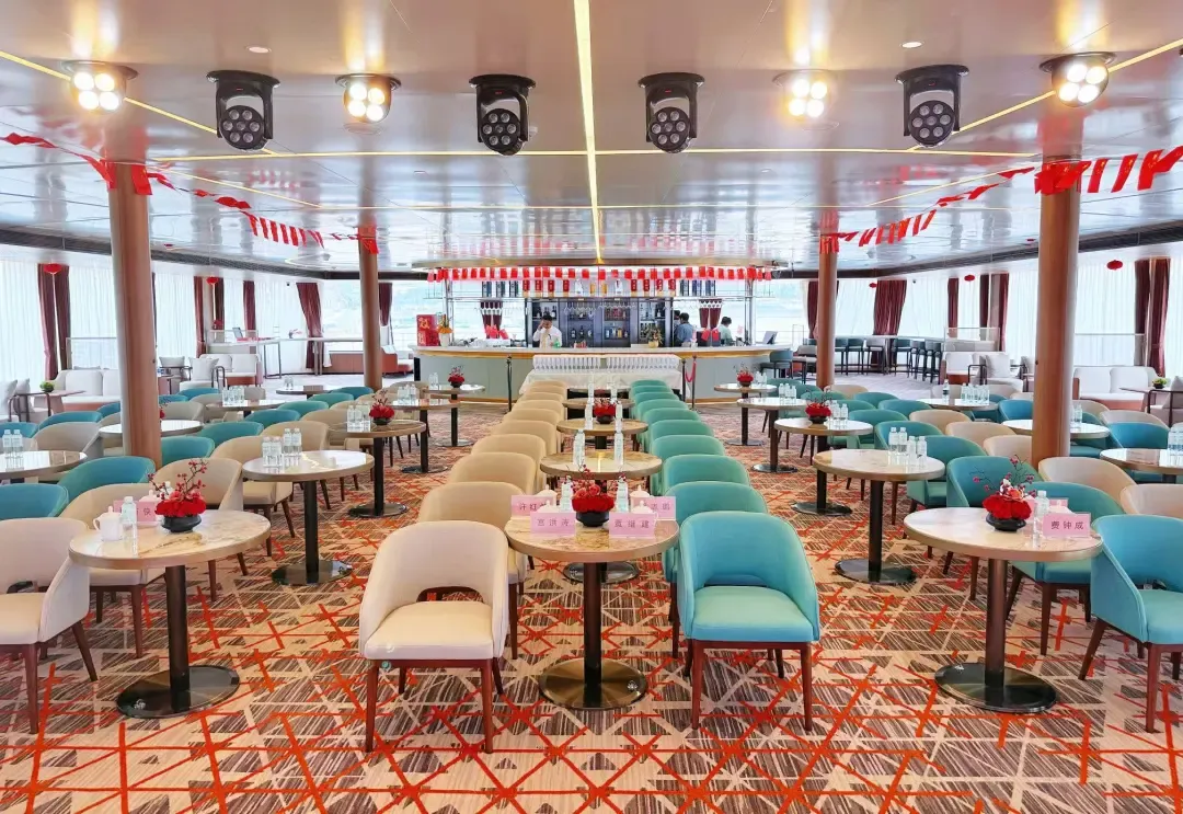 270°落地式全景玻璃观景厅是点睛之笔,无论用餐还是观看演出,两岸山水都是永不落幕的背景板,沉浸式包揽峡江风光。