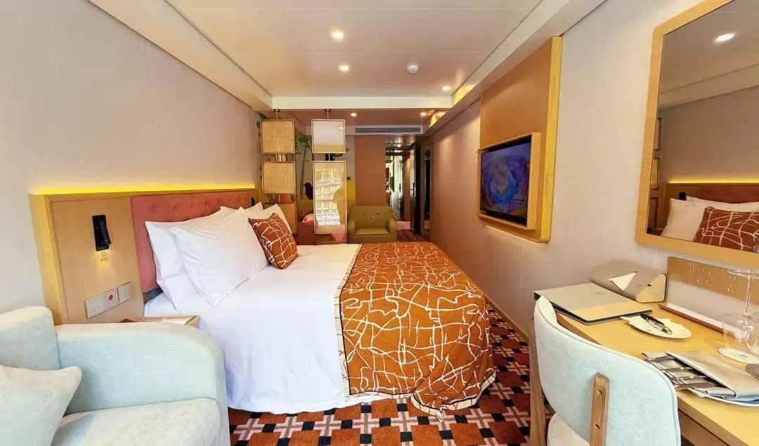 全船搭载华为鸿蒙智家系统,语音就能轻松调节舱内灯光、温度,无感入住、情景模式一键切换,科技感拉满,更有高速WiFi丰富船上娱乐。