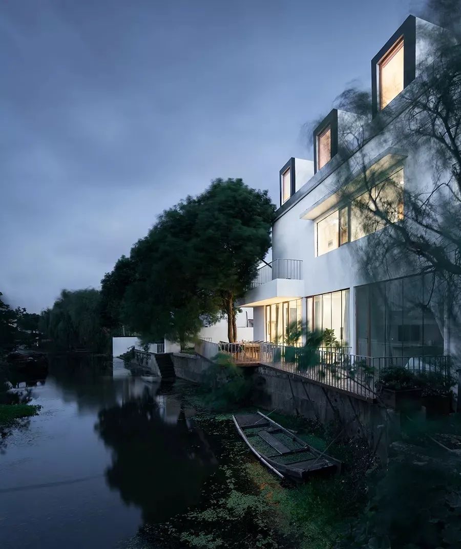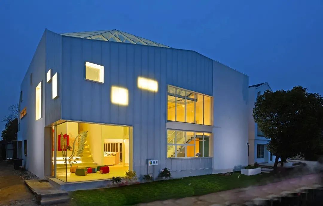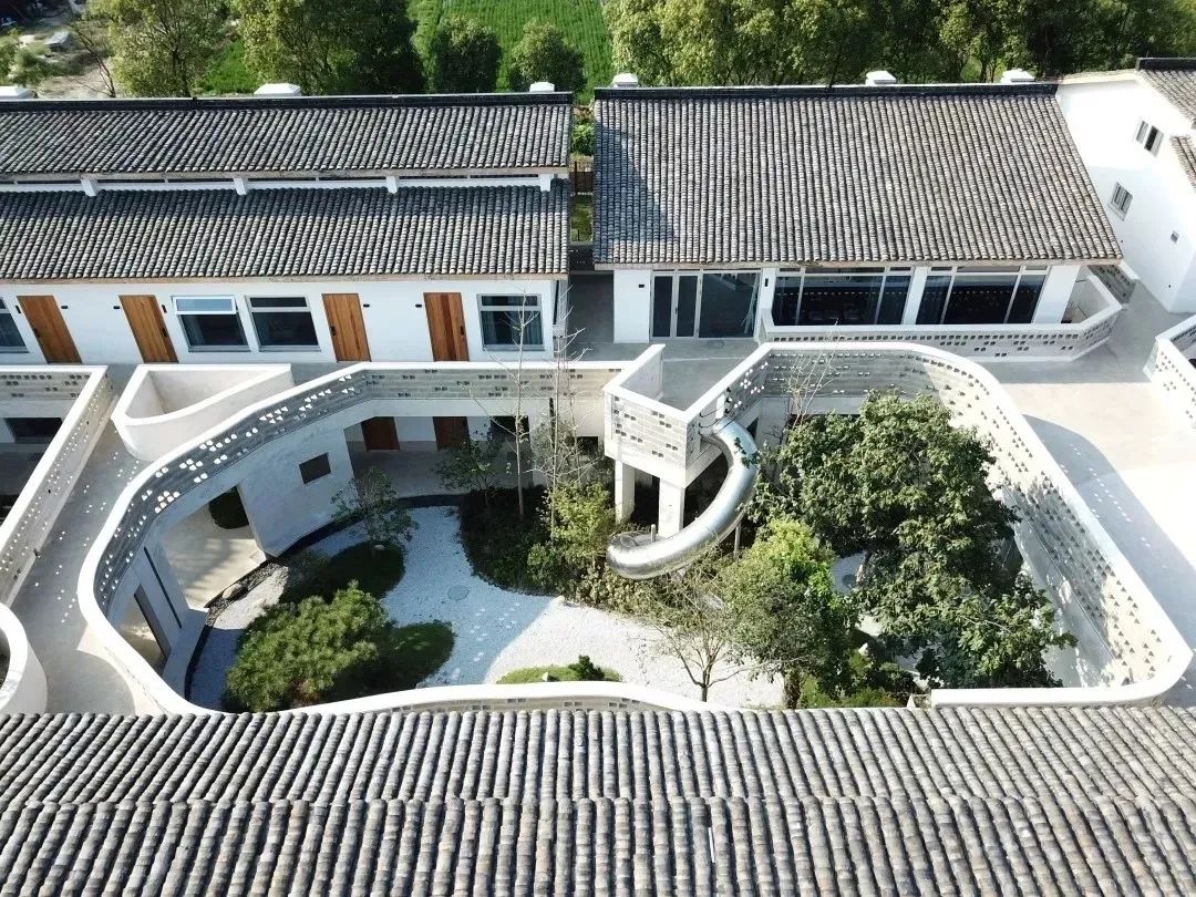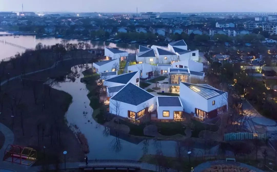 每个庭院都设立了独有的公共空间,有日式榻榻米茶室、中式茶舍、古砖收藏室、影音放映室、儿童乐园等。原舍•祝甸的结构设计由台湾轻型钢构和乡村民居设计大师谢英俊先生设计,曾获得第三届远东杰出建筑设计佳作奖,入围联合国最佳人居环境奖。和周庄古镇隔水相望,13个独立的建筑单体组成20个空间,“大盒子”搭配着“小盒子”,就像是大人拉着小孩子的手在玩耍,所以称之为“玩耍的盒子”。