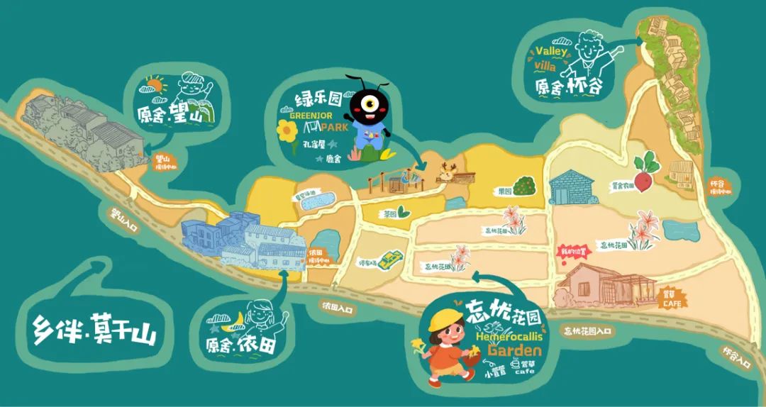 小蚂蚁Mimo 是绿乐园自主设计的IP 形象,绿乐园通过主题绘本故事,将无动力乐园的每一处场景融入Mimo 的主题故事中,每一个绿乐园项目,根据项目在地自然地域及历史文化特色,都衍生出小蚂蚁Mimo 成长路上不同阶段的主题故事,而周庄绿乐园是Mimo 故事的起点—《Mimo 勇敢历险记》。