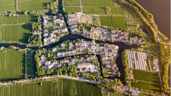 在稻田和河道之间,是被香樟树包围着的村舍,和静静流淌着的河水。从高空俯瞰,整个村落被稻田环绕着,茂密的香樟树是农田与村舍之间的天然分界线,两三条水道穿村而过,小桥流水,农田房舍。村内业态丰富,民宿、陶艺、书店、餐厅、咖啡馆等,人们依照时令生活,春种秋收,踏实自足,是新时代归乡人的造梦点。