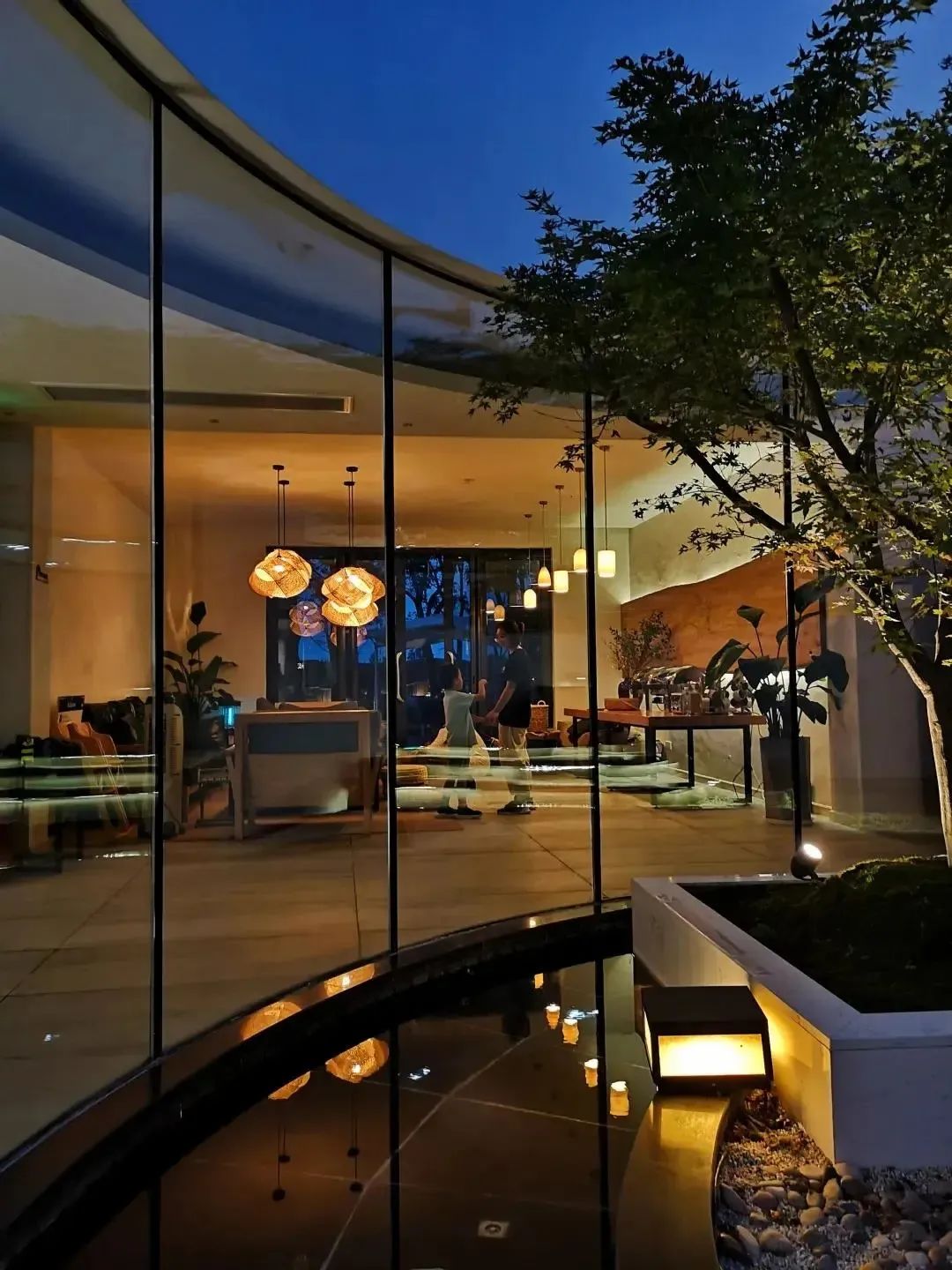拥有 “前林后水”得天独厚的自然条件,因而得名为“阅水”。客房内部装饰秉承了原舍一贯的“无设计”风格,抛去一切多余的加工、色彩,保留空间的功能性与质感的同时,让其回归原始与本真。庭院内置小舟,假仿古画意境,以石铺为水,土丘为岸,树林葱茂,屋舍掩映。室内的装置吊灯以舟的龙骨为原型,悬置堂中,飘逸空灵,道出几分水乡情。25间房4栋别墅,设计师共做了12款房型,就像上帝创造的伊甸园,星空河景、小院私墅、Loft的天马行空、180°环绕式套房的随心所欲,能满足你对度假的所有幻想:自带私汤,极致的秋冬享受,藏在几片竹墙里,屋外有光,穿过庭院,把客厅照的暖暖的,体验被花朵滋润的疗愈。