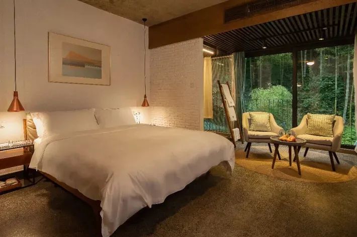 单从核心帐篷单元来看,一顶帐篷(含全套软装)+基础,保持轻奢舒适度,整体投资可控制在2万/个,帐篷住宿400-600元/晚,而一般营地运营都采用一价全包的模式,住宿收入占比在50%,扣除运营成本保持常态运营4个月左右可回本。宿里(意为“住在村落里”),坐落在素有“十里画廊“之美誉的莫干山镇上皋坞村,坐山拥湖,既有莫干山区域最高峰—王位山,又有位列浙北四大湖之一的莫干湖。奥地利设计师Genco与瑞士馆设计师张旭联袂设计,7栋别墅、29间客房,是现代工业风和复古工业风的完美结合。
