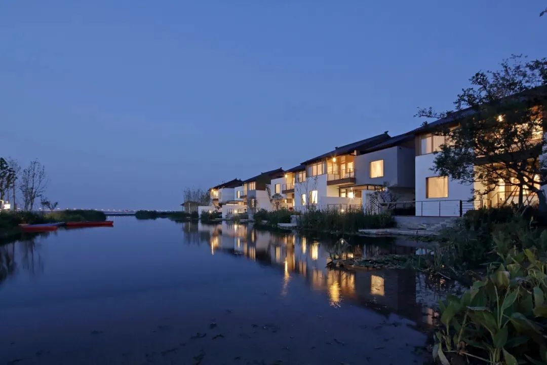 和古砖窑隔水相望,建筑以砖、瓦、竹等乡土材料为主,又结合了现代的设计感。将当地砖窑烧制的砖块,运用到装饰中,扑面而来的唐风感。有10栋小单体,其中5栋临水而建,紧靠着长白荡的水面,每一栋临水的房间,都拥有一个属于自己的临水廊台,面对着波光粼粼的水面,真正还原枕水江南的韵味。