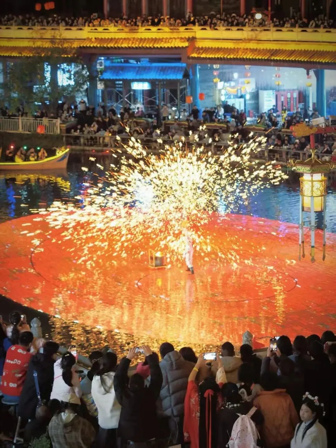 建筑、灯光、演员和游客