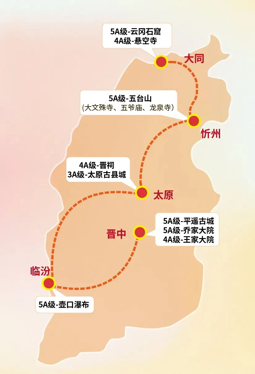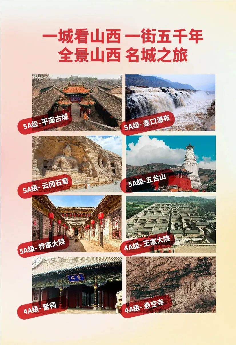 全景山西 汽车5日游,五个5A级景点,三个4A级景点,五台山+壶口瀑布+云冈石窟+平遥古城...全程0购物0自费,年满60周岁仅需799元!