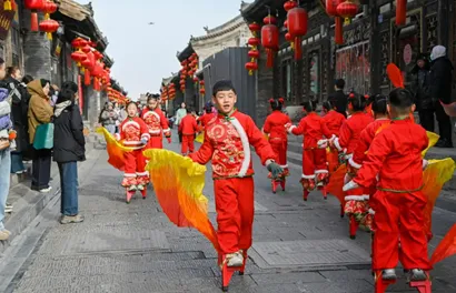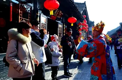 晋中平遥早就是远近闻名的古县城了,在春节期间位列全国热门县域旅游目的地第三位,同样设置免费临时停车场来解决游客停车难问题。同时以“骏马迎春 福满新程”为主题,古城街巷全部点亮,还有NPC福马巡游互动,以及社火(秧歌、锣鼓)每日巡演等等,通过沉浸式互动、绚丽灯光秀再现传统年味。
