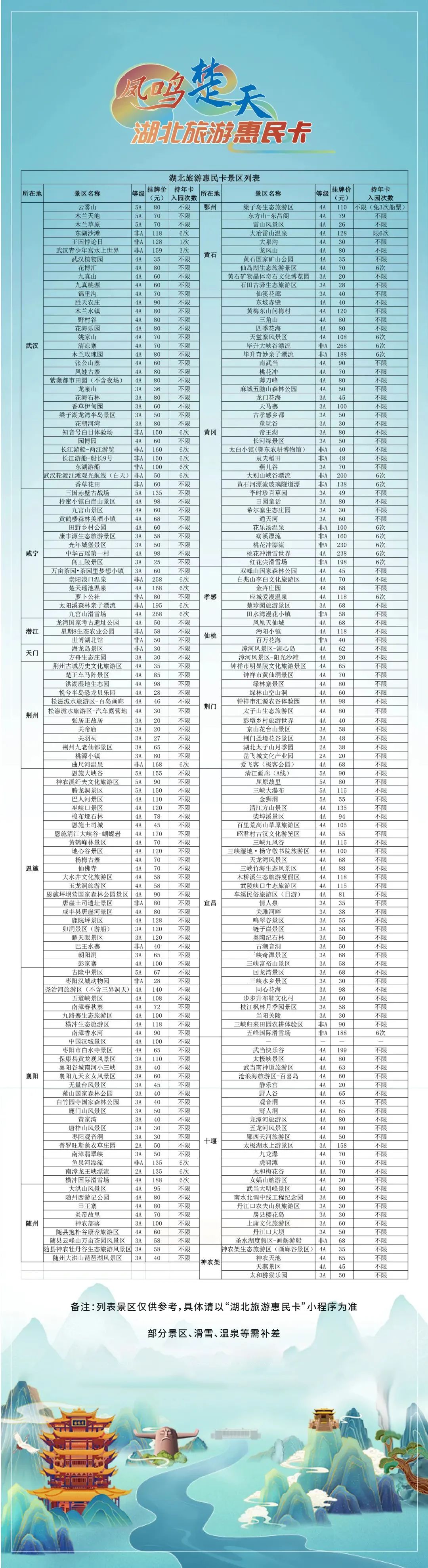 |门票|40r起,湖北旅游惠民卡免门票