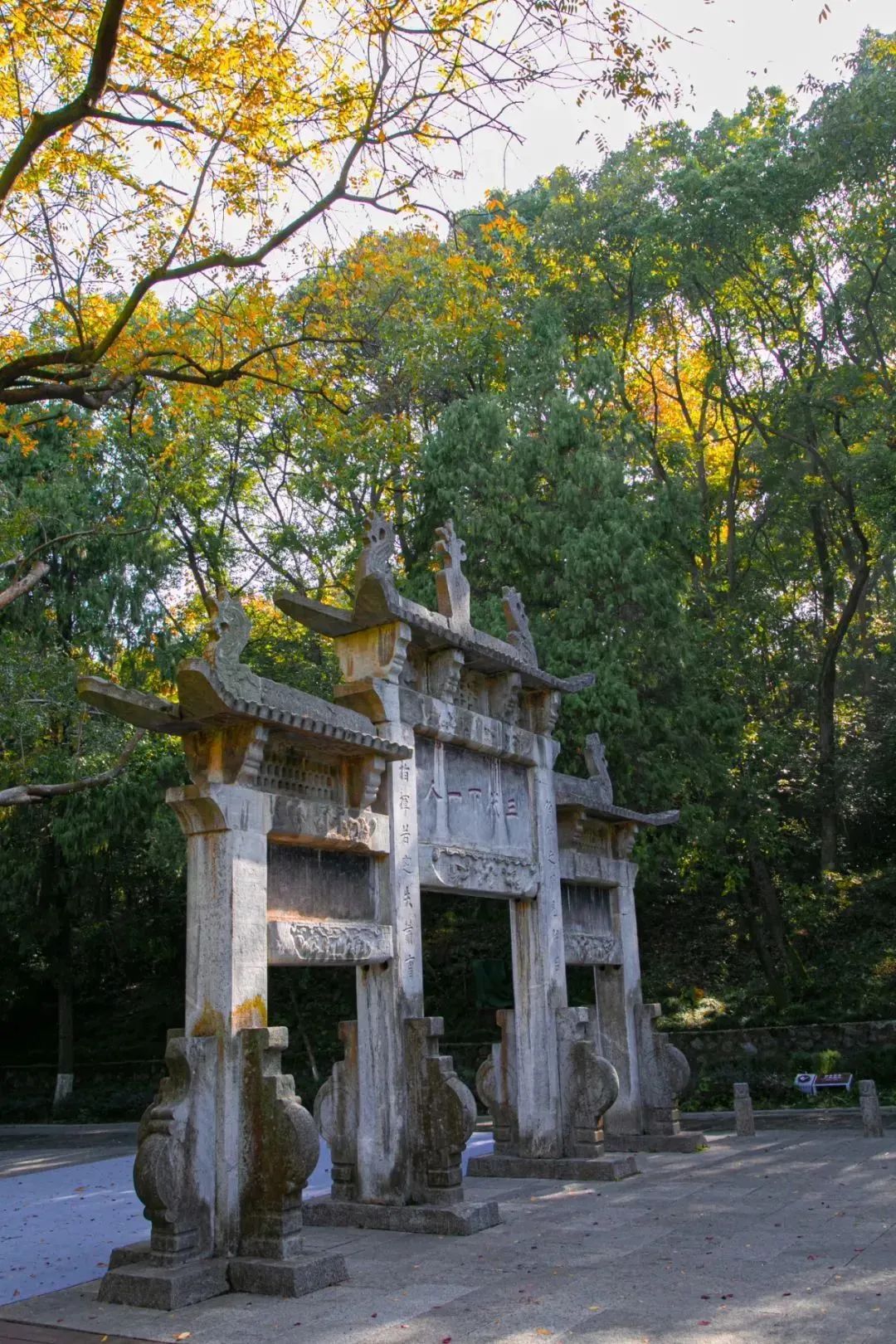 古隆中景区的秋天,不同品种的树木与植被交相呼应,黄的、红的、绿的叶子美得让人移不开眼。