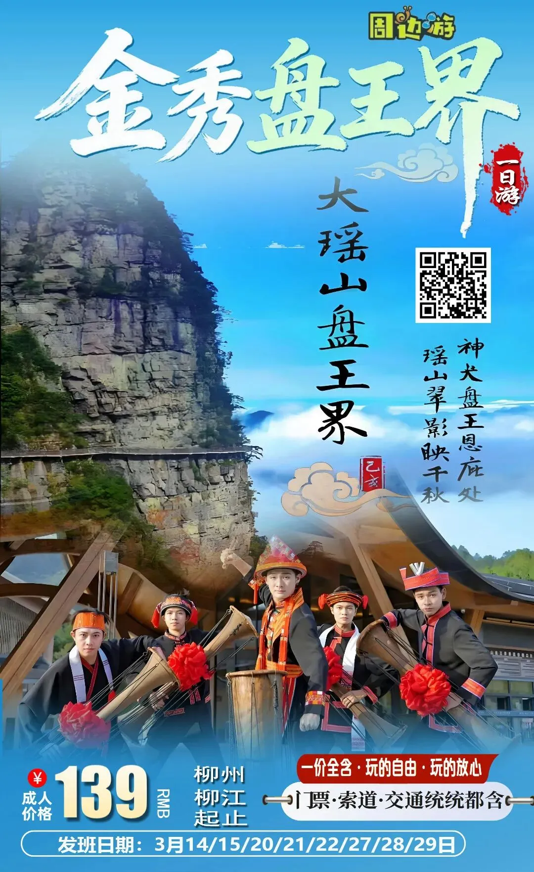 3月15日(已经成团,有位)金秀大瑶山.盘王界特惠一日游139元/人(本次优惠活动仅限广西户籍人士报名,要带身份证)