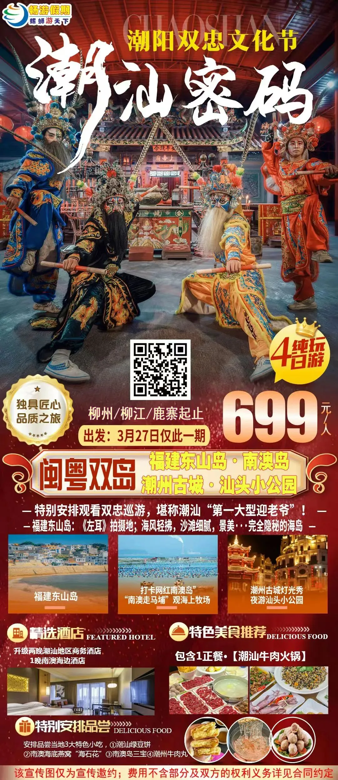 3月27日(已经成团,有位)【闽粤双岛·潮汕密码】潮阳双忠节纯玩4日游 699元/人