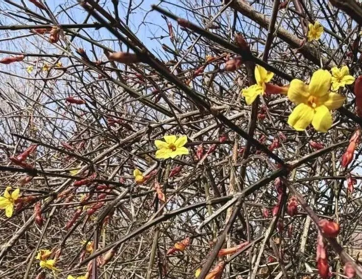 嫩黄新芽缀满枝条,随风轻摇