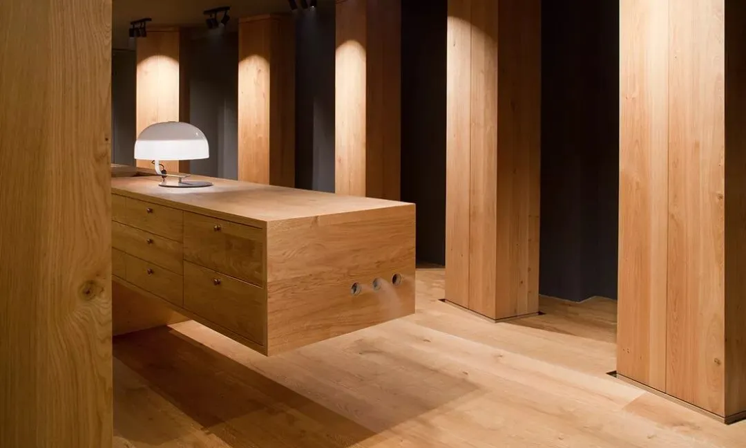 自20世纪初以来,多家知名剧院、电影院和爵士俱乐部在这片区域开张,店铺的设计者也在其中采用了许多表演艺术元素。七根高高的空心橡木柱从地面升起,白天,木柱打开,作为商品展示柜,引导人们从一个柜子穿梭到另一个柜子。夜晚,柜门关闭,它们就作为空间内建築元素的一部分,继续发挥支撑作用。