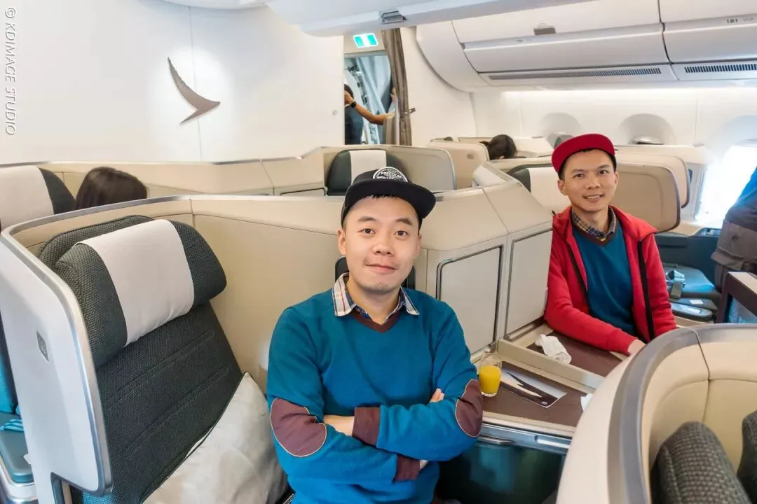 我们登上了国泰航空的A350飞机,