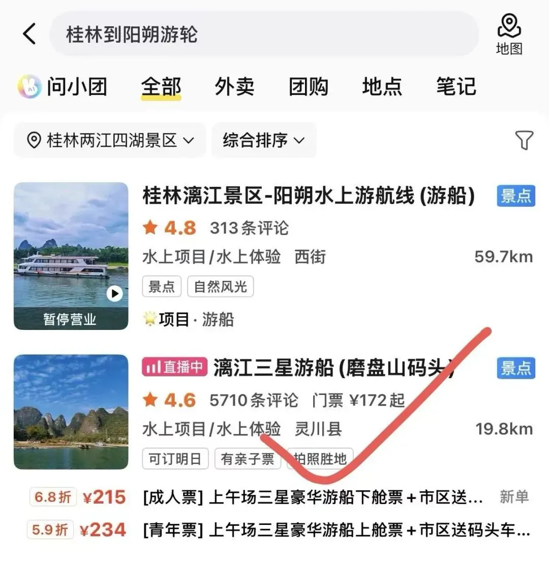 • 建议提前订漓江去阳朔游轮(美团选3星即可),205元包含从酒店接送至码头大巴,订票后导游会电话联系你
