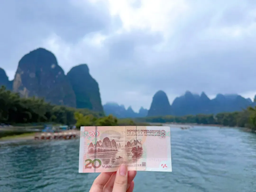 20元人民币背景观景台,离阳朔高铁站约7公里