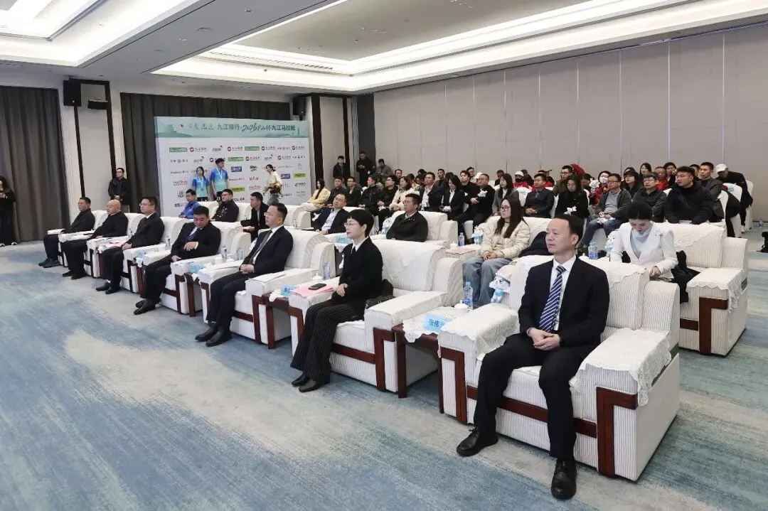 九江市人民政府副秘书长方忠生出席发布会并致辞,九江市体育局党组书记、局长袁勇发布赛事相关信息,九江市国控(文旅)集团赛事推荐官黄兆琦现场发布赛事参赛服装及完赛奖牌。发布会上还举行了赛事独家冠名商、官方赞助商及赛事支持商授牌仪式。来自江西日报、江西广播电视台都市频道、大江网等二十余家省、市媒体及来自九江市的跑团代表出席本次发布会。