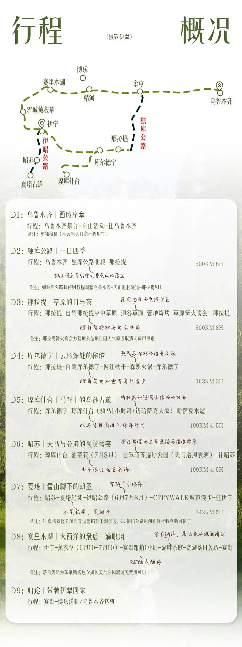 备注:如独库公路封闭则行程调整乌鲁木齐-天山胜利隧道-那拉提8H