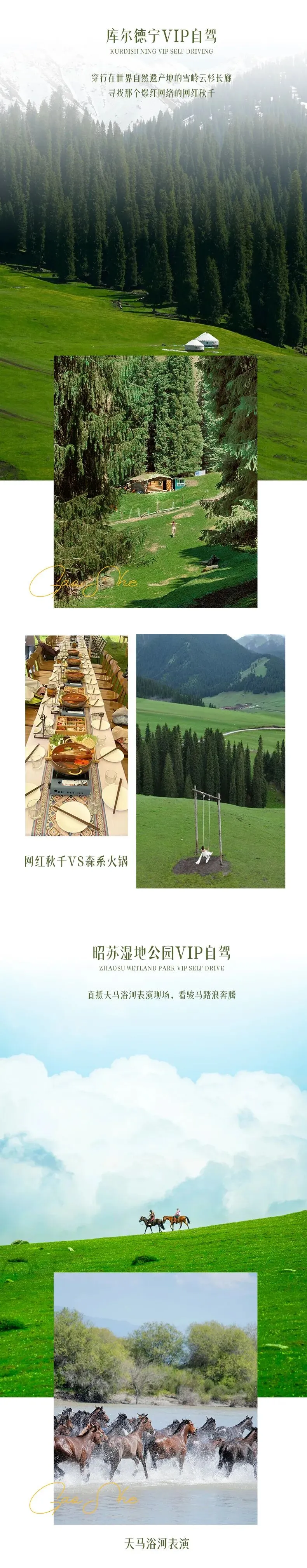 09:00自驾库尔德宁,这里是天山森林最繁茂的地方,被誉为 “天山最美的绿谷、雪岭云杉的故乡”。穿梭在林间小道,两侧是高大挺拔的雪岭云杉,遮天蔽日,阳光透过树叶的缝隙洒下,形成一道道金色的光柱,如梦如幻。 ![]() 15:00打卡景区内网红秋千,在云杉林的映衬下,荡秋千、拍美照,解锁网红打卡姿势,体验惊险与浪漫并存的乐趣。 18:00享用森系火锅,在郁郁葱葱的森林中,品尝当地美食,感受大自然与美食的完美融合,驱散山间凉意。 ![]() 晚上住在库尔德宁。 | |
