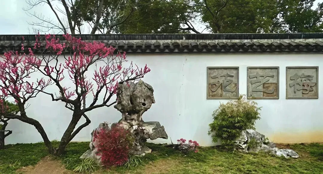 在改造提升后的北园,沿着新辟的"红梅大道"或"美人梅大道"漫步,可以更清晰地辨识不同梅花的品种。登上园内标志性建筑念劬塔,远眺太湖烟波,体会"梅园之胜,在于园外之湖山"的造园精髓。
