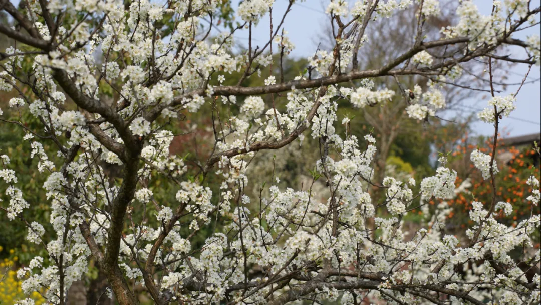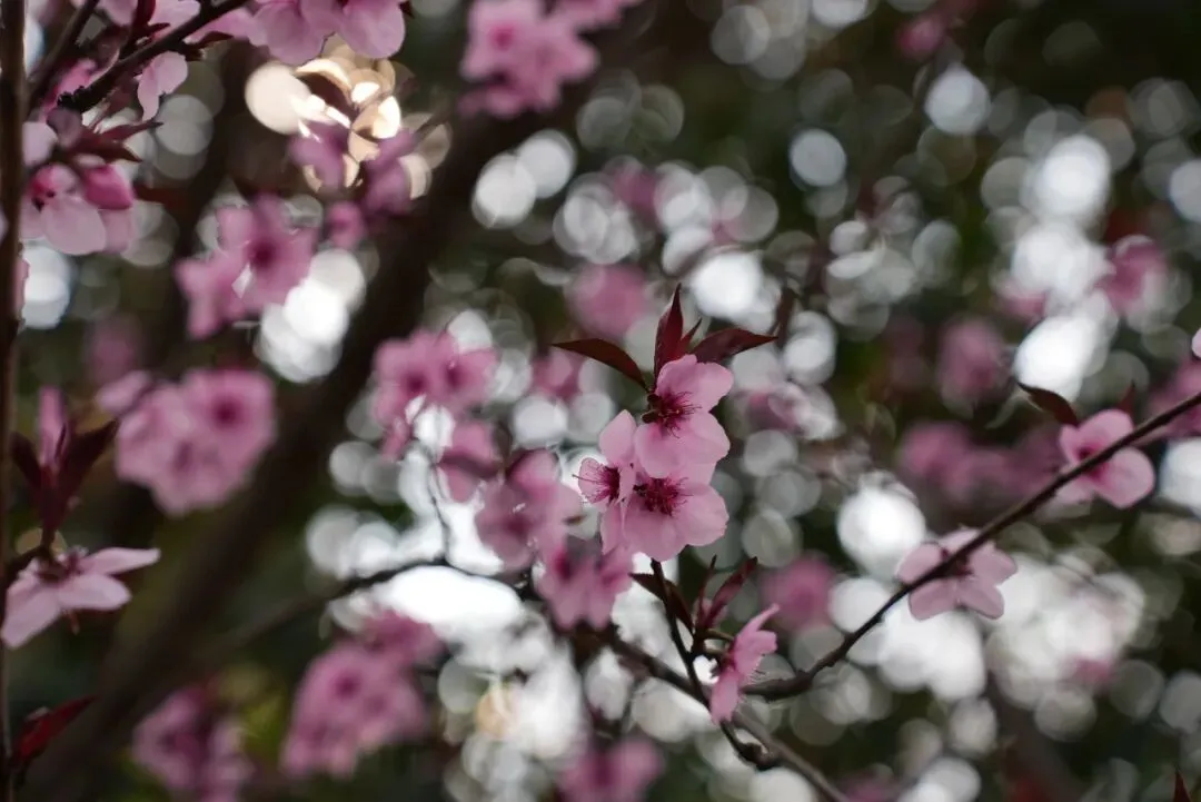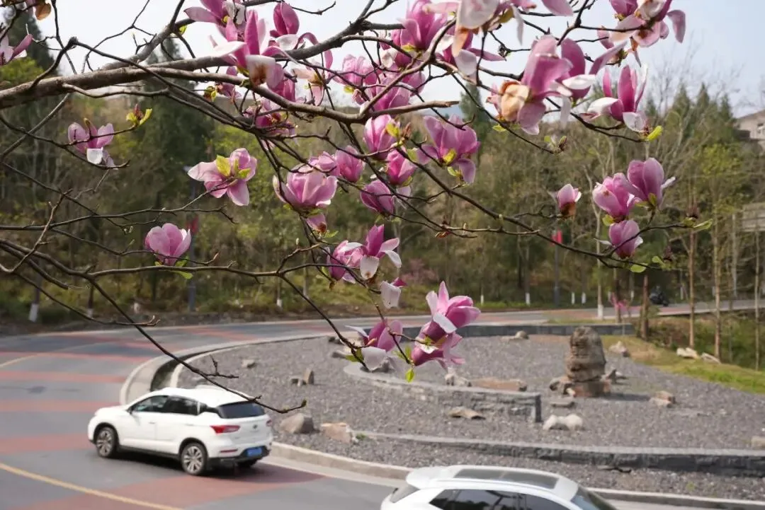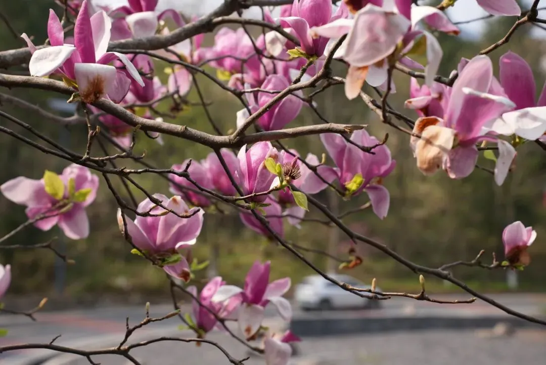 桃花、李子花、玉兰花、紫荆花四大美人同框