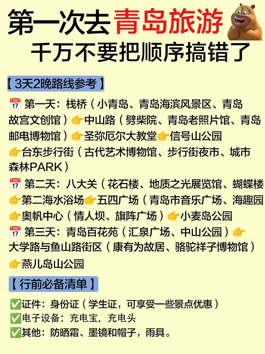 D1:栈桥 → 天.主教堂 → 信号山.公园 → 德.国总督楼旧址 → 大学路网红墙