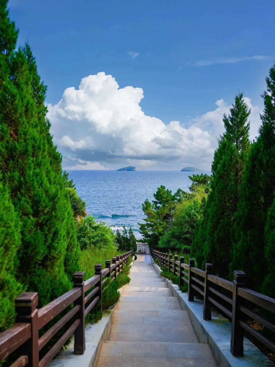 这里的海.,干净得像刚洗过.的.玻.璃。成山头风.大,能把头.发吹得笔直。.但最喜欢的,.还是骑辆电动车,.在环海路.上慢慢遛。.左.手是松林和峭.壁,.右手.就是无边的蓝。路过一个不知名的海滩,就停下来,脱了鞋踩水.,沙子细得从脚趾缝.里.流.走.。