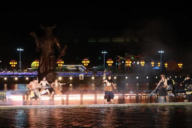 大型实景演艺《戏说神农·华夏之火》,围绕着神农与蚩尤的冲突展开,玄女飞天、非遗打铁花、烟花瀑布等特效,让人叹为观止!