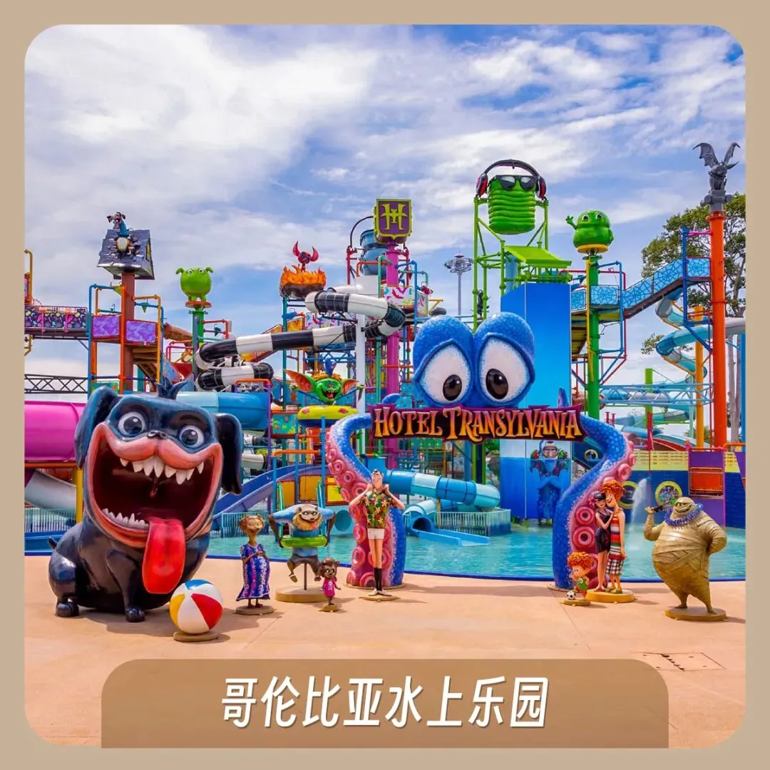 哥伦比亚影业主题水上乐园包含八个主题电影沉浸式游玩区域,每个主题区域都包含了一系列水陆游玩项目,精彩纷呈的现场表演、互动道具、独特布景、主题餐厅、特色商品和零售店,为全球游客带来《精灵旅社》、《野蛮游戏》、《表情符号电影》、《冲浪季节》、《魔鬼克星》、《食破天惊》、《绝地战警》等知名电影的沉浸式游乐体验,一次性浪个够!