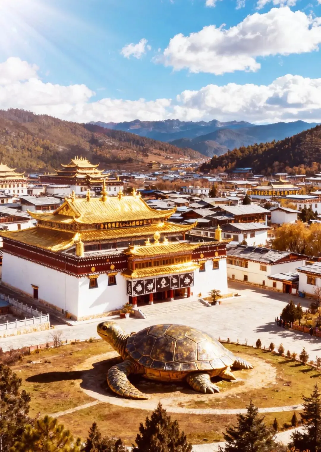 第一天:独克宗古城 — 龟山公园 — 松赞林寺 — 纳帕海(依拉草原)