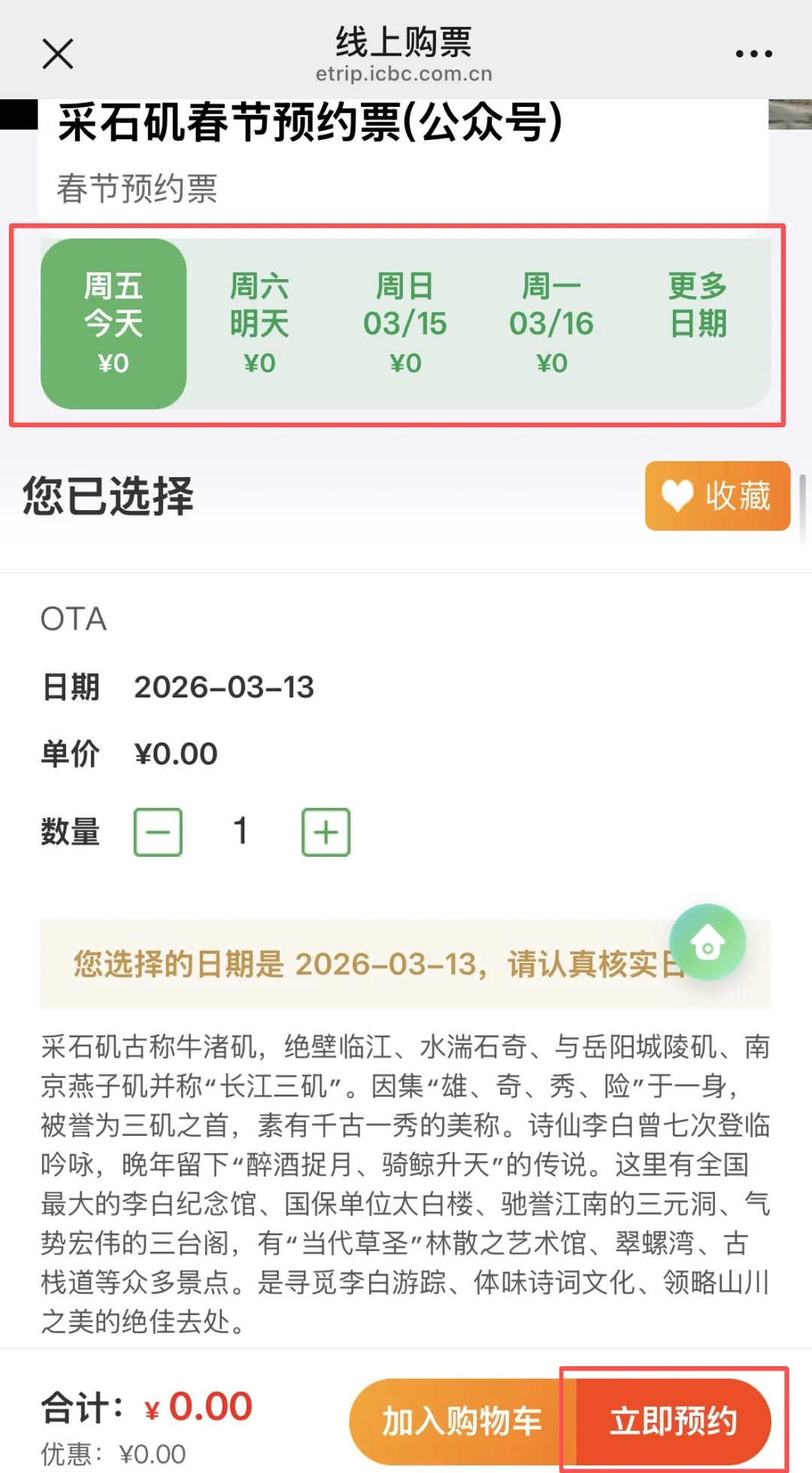 注意看!只有采石矶景区需要提前预约,其他四个景区无需预约~直接冲就行🚗 免票福利倒计时,别卡在预约上,无痛入园攻略在此,周末踩点冲! 手把手教您如何预约采石矶景区 点击“门票预约”