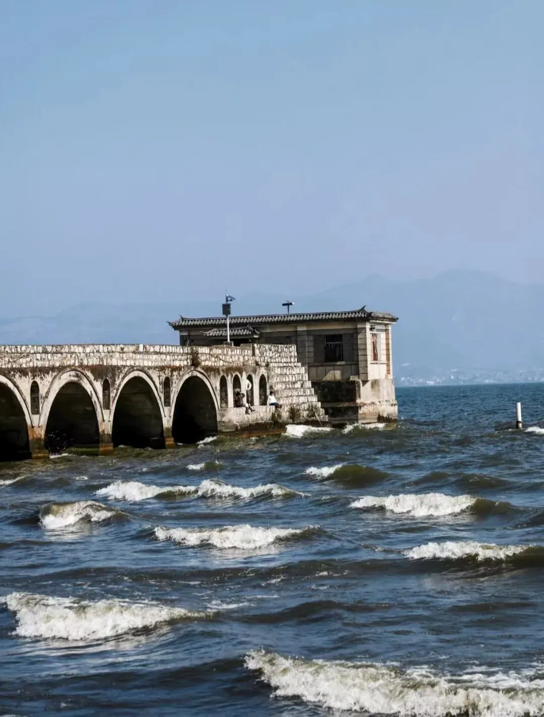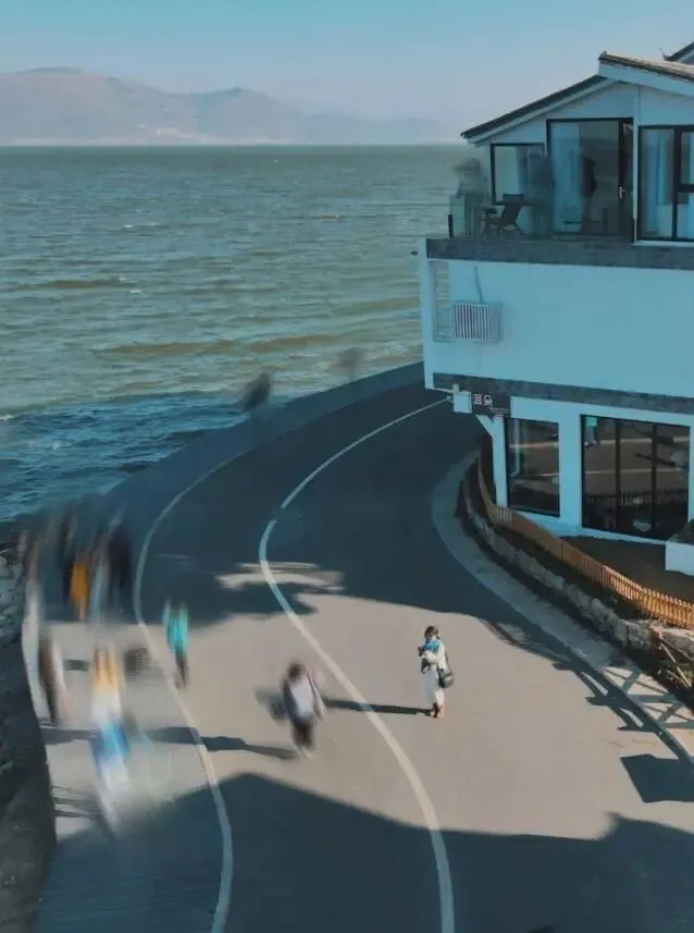 洱海西边沿线:一共七个景点,从下往上,依次是三圣岛-龙龛码头-才村-下波棚-S湾-廊桥-海舌公园