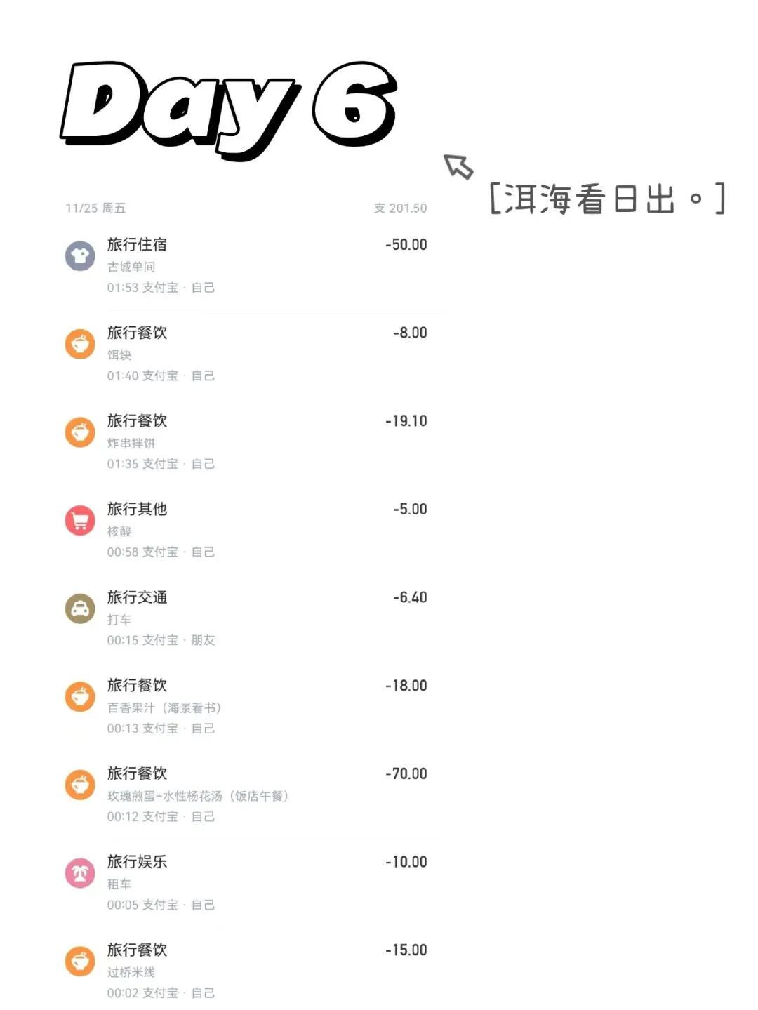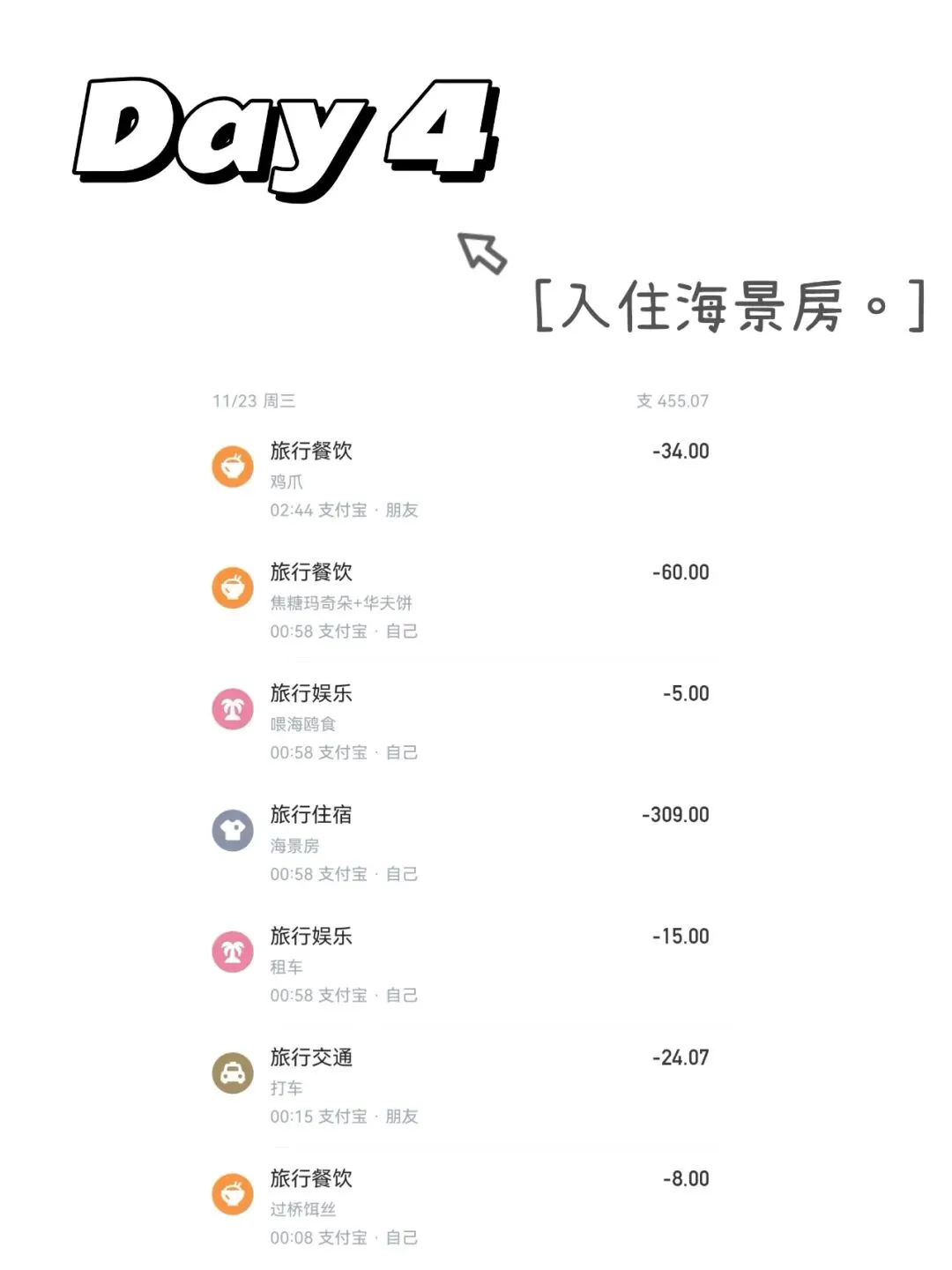 我个人是觉得蛮放开手脚的一次消费,高铁餐吃了两顿,出去玩看到想吃的就买,我甚至就为了想吃某饭店里的两道菜花了70块钱吃一顿午餐,唯一不好的就是剩了一桌子的菜
