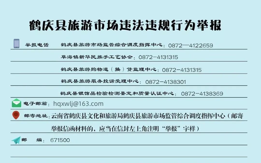(二)网络举报:通过登录“游云南”App或微信小程序“游云南”,及电子邮箱dlwlzcfgk@163.com,进行举报。