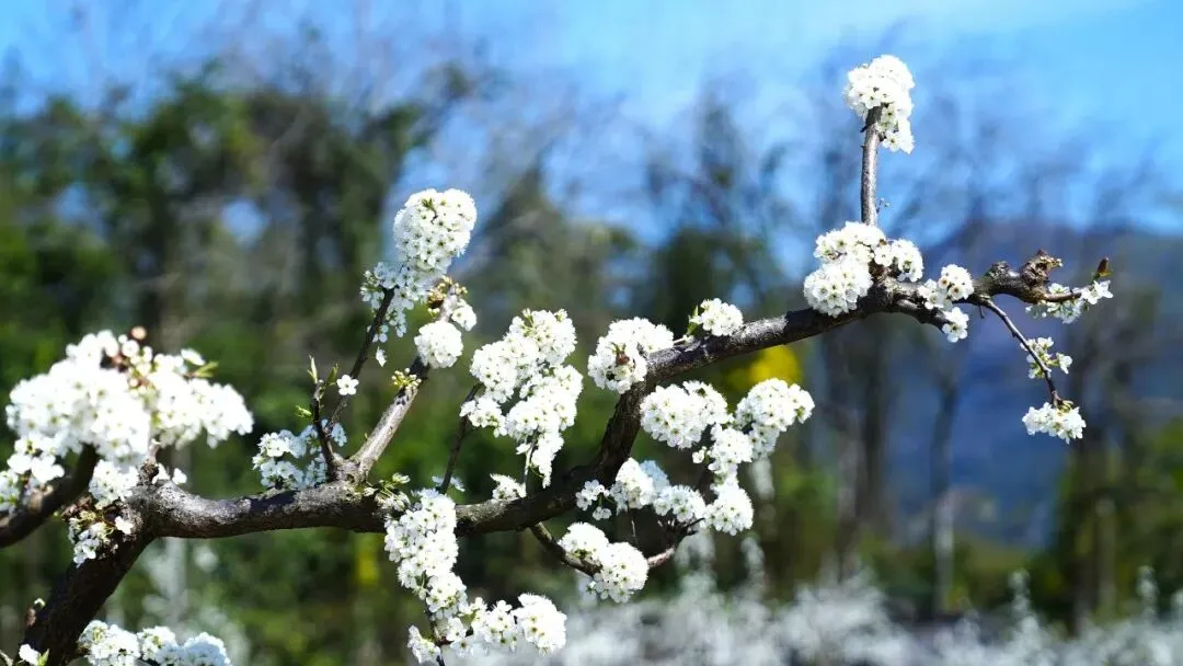 在务川红丝乡先进村土垒组精品水果基地,200亩李花迎风盛放,洁白花瓣缀满枝头,微风拂过,花香漫山,美不胜收。谁能想到,这片如今绿意葱茏、鸟语花香的地方,曾是岩石裸露、植被稀疏的石漠荒山,如今已然蜕变为生态果园,更成了乡村网红景区,吸引不少游客趁着春日,前来踏青赏花、拍照打卡。