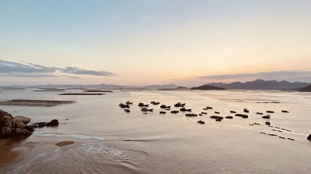 距霞浦县城约28公里,因背山面海、日落滩涂光影绝美,被誉为 “中国最美日落拍摄点之一”,是闽东极具代表性的滨海渔村与世界级摄影胜地。村庄依山傍海,属“八山一水一分田”地貌,是三沙光影公园西片核心区,建有5.3公里环海栈道串联周边村落。海面上是成片的紫菜 / 海带养殖区(海上牧场)。核心打卡点有三沙光影栈道、东壁大桥 / 岗尾大桥、东壁天主教堂、滩涂与海上牧场、渔村古厝群等。