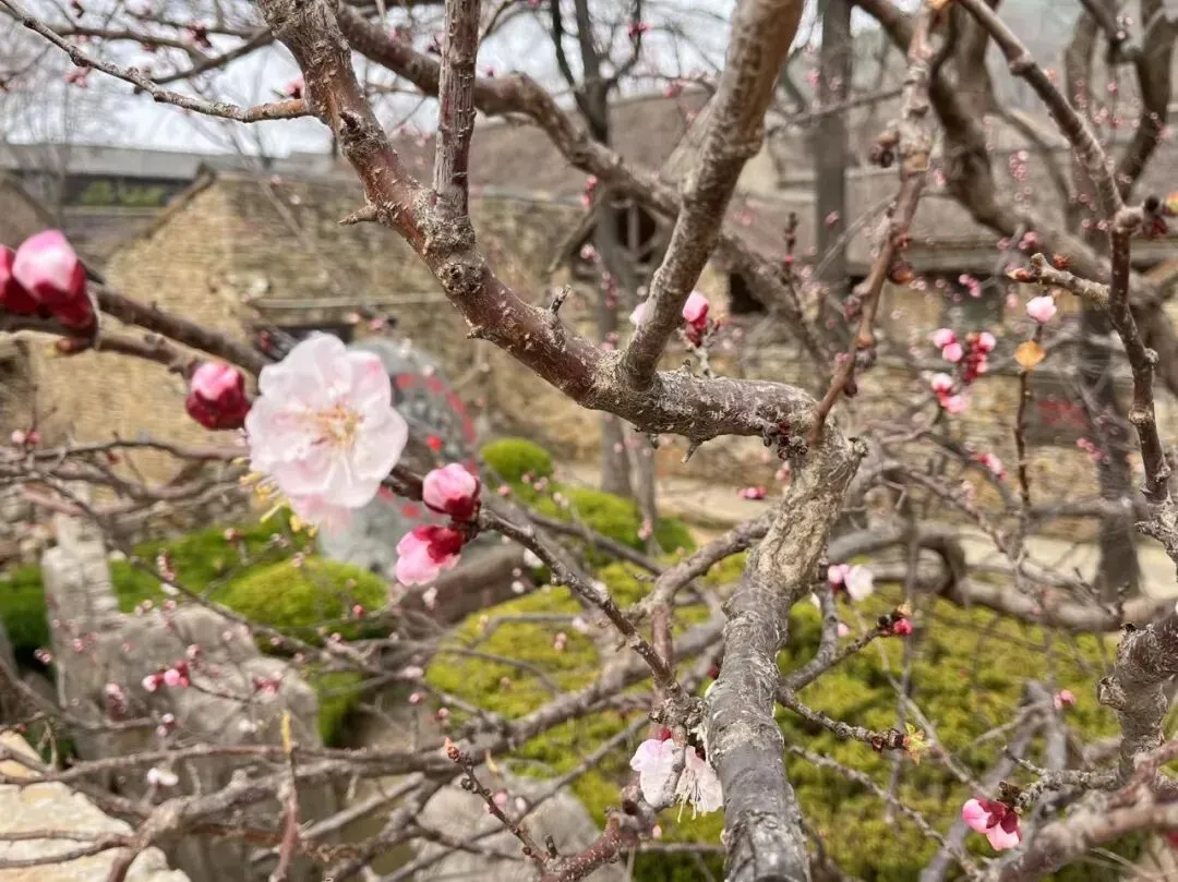 院落里的杏花含苞待放,再过几日,便会绽出一树粉白。石碾旁,不知名的小野花已星星点点地开了一片。