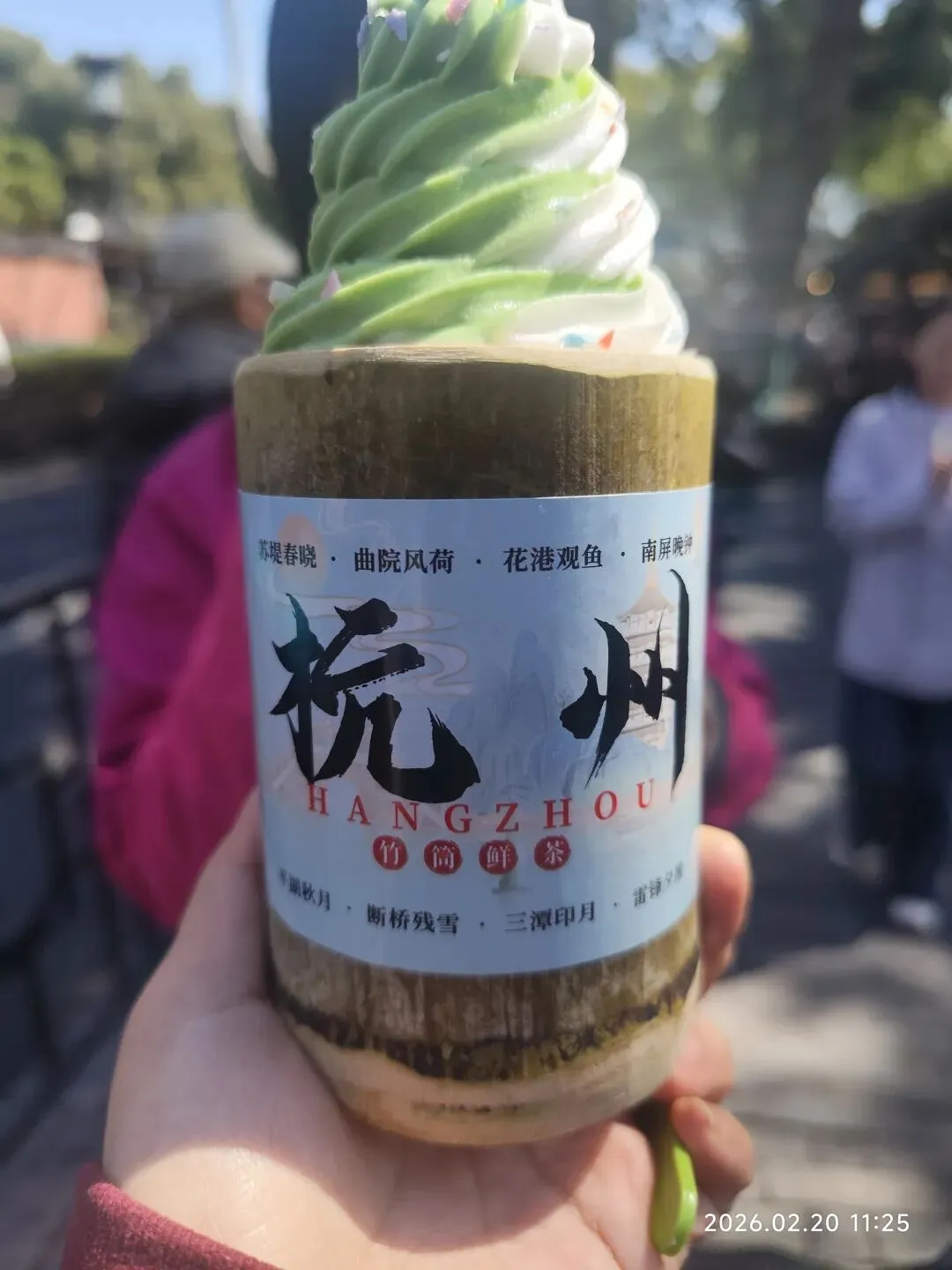 下船后,在西湖附近的商业街,趁着导游让上洗手间的空档儿,我果断放弃了去洗手间,跑到卖竹筒冰淇淋的店铺,迅速买了三个竹筒冰淇淋,真是抓紧一切机会享受美食,撮中吃货女儿内心最温软的七寸,哈哈~