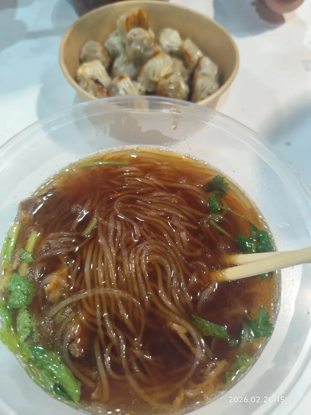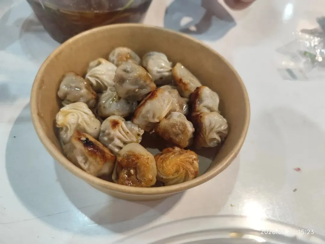 选了宋城美食城里这家需要排很长队的铺位,买了牛杂粉和拇指煎包。