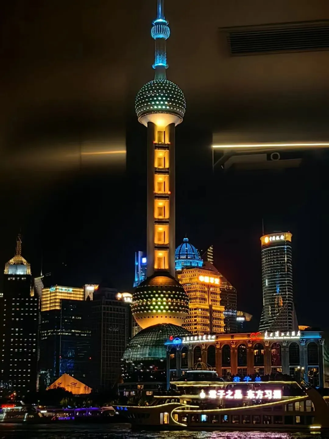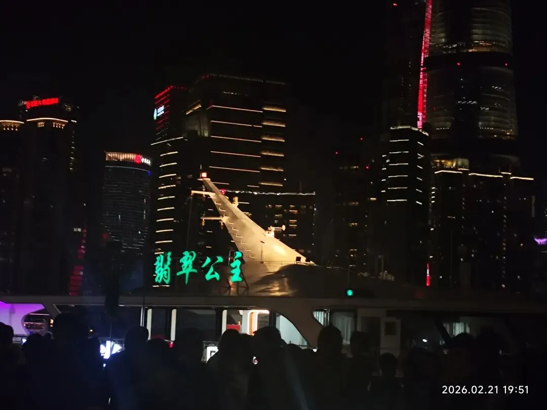 夜风有些微凉,我们站在甲板上,感受着大上海的繁华与往事沉浮,内心微有波澜,赶紧给妈妈拨打视频电话,让她也感受一下大上海的夜……