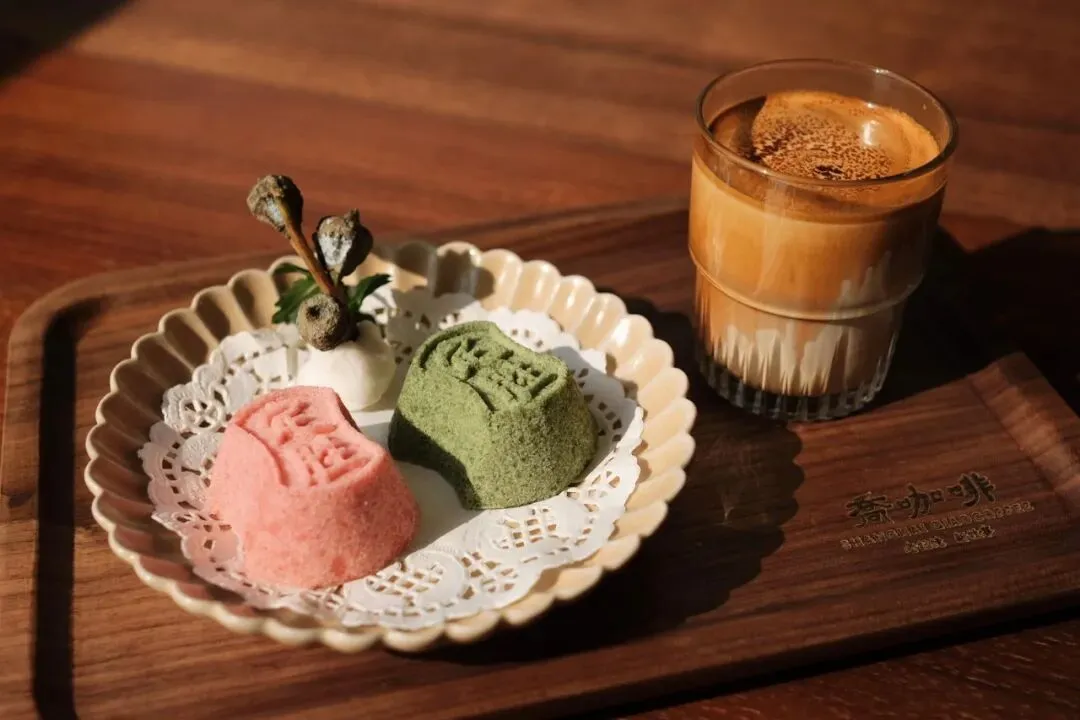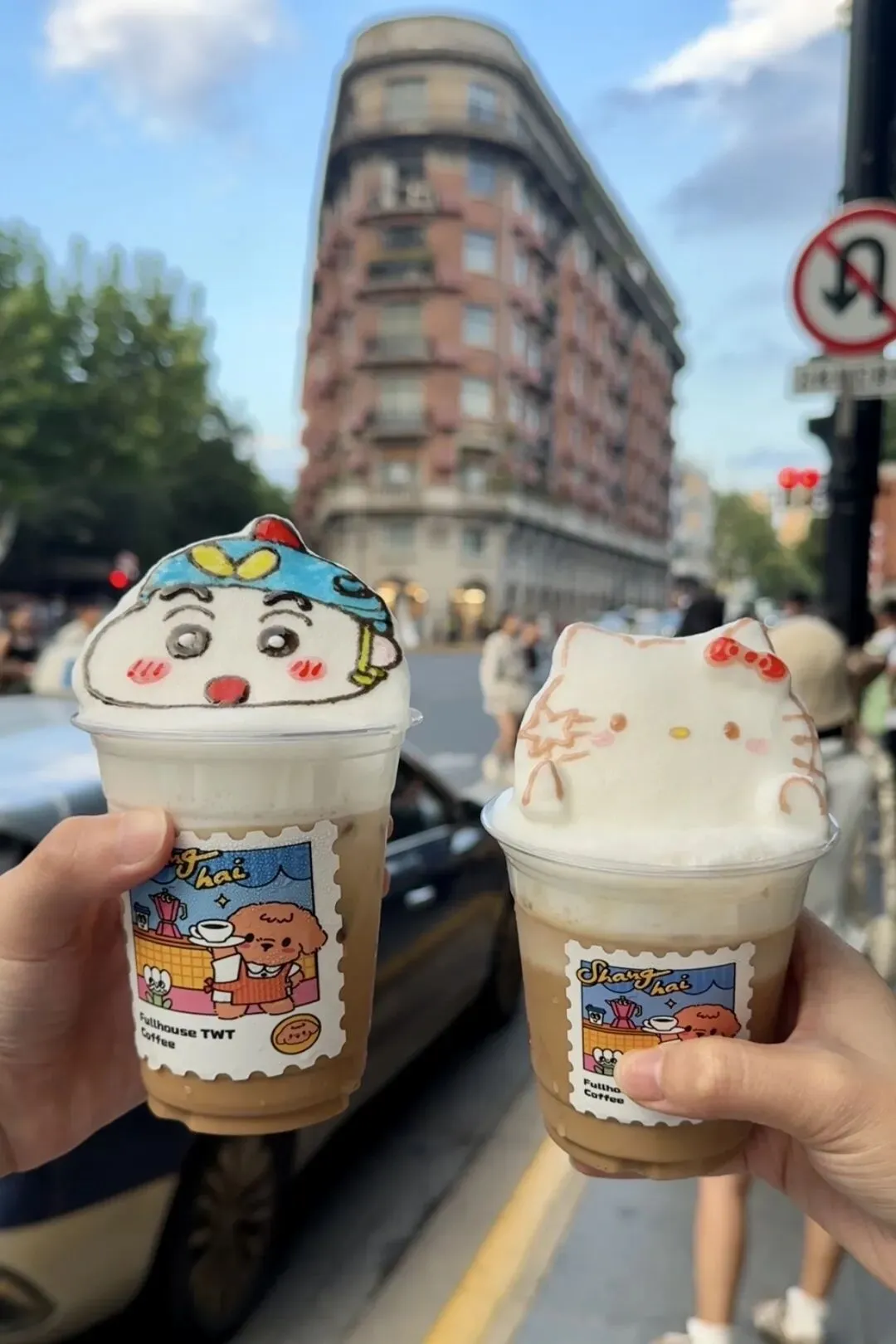 武康大楼旁,毗邻武康大楼主题邮局的FULLHOUSE TWT 的3D定制奶盖咖啡正成为春日打卡新宠。