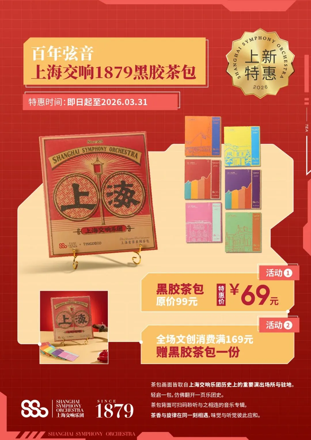 百年弦音黑胶茶包——茶面印刻历史,扫码听专辑,茶香与旋律应和。