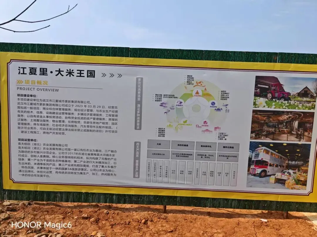 好消息!五里界再添新景点,江夏里二期大米王国开建喜欢的,可以点点关注 ☝️ 近日小伍发现江夏里二期已经开始建设,二期名为:大米王国,占地面积900多亩,该项目包含:咖啡厅、露营基地、民宿等项目 由“袁夫稻田(湖北)农业发展有限公司”运营,“袁夫稻田”是湖北黄梅极具代表性的农旅融合 3A 级景区,凭借稻田景观、特色民宿与文创体验火爆出圈,也是乡村文旅标杆项目;未来在该公司的运营下“大米王国”有望又会是一文旅新地标 去年,江夏里老码头开业即爆火出圈,几度登上央视平台;但不少网友吐槽:景点面积小、可玩空间有限;这次的二期项目占地900多亩,可玩的项目较多 游客既能“白天漫步稻田间,闻着淡淡稻香、随着季节变换感受满眼的青翠与金黄”、又能“夕阳西下,手捧一杯醇香咖啡,在稻浪与晚霞间,品味独属于夏天的浪漫与闲适”、还能“夜幕降临,漫步码头,看光影流转,感受夜色下的别样风情”,让我们这些职场的“牛马”在“江夏里”能够卸下一天的疲惫