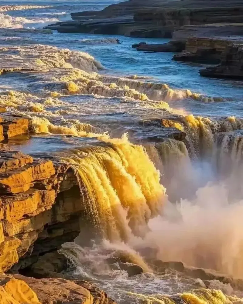 ⑤国家AAAAA级景区--壶口瀑布,中国第二大瀑布,赏“黄河之水天上来”的浩大水势,断崖绝壁间一泻千里之势。