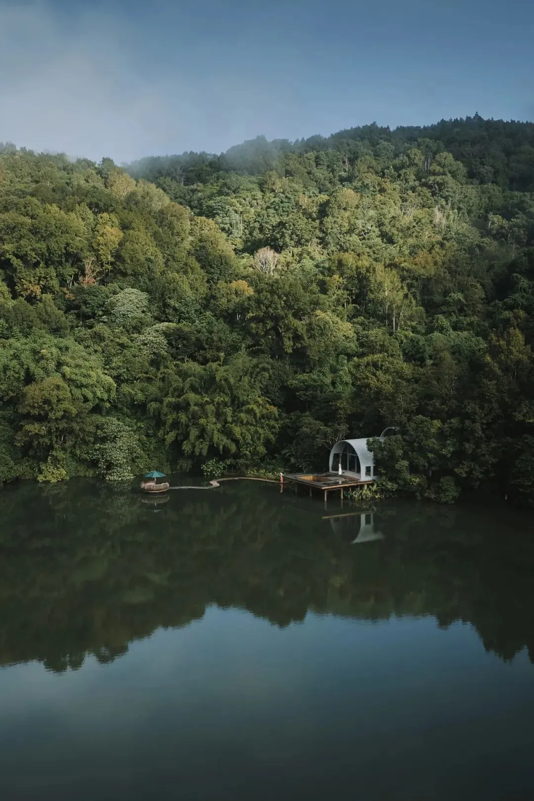 景区四面环山,黎族母亲河——水满河蜿蜒穿行,将黎哥岭、母亲岭、苗妹湖、山盟梯田、雨林木屋等核心景观如珍珠般串联,形成一条“五指山翡翠项链”。这里仿若陶渊明笔下的世外桃源,远离尘嚣,宁静如避风之港。游客至此,既可徒步雨林、康养休闲、观赏茶山,也可品尝“会冲浪的鱼”“不回家的牛”等特色黎苗美食,在山水相依间,沉浸于浓郁的民族风情之中。