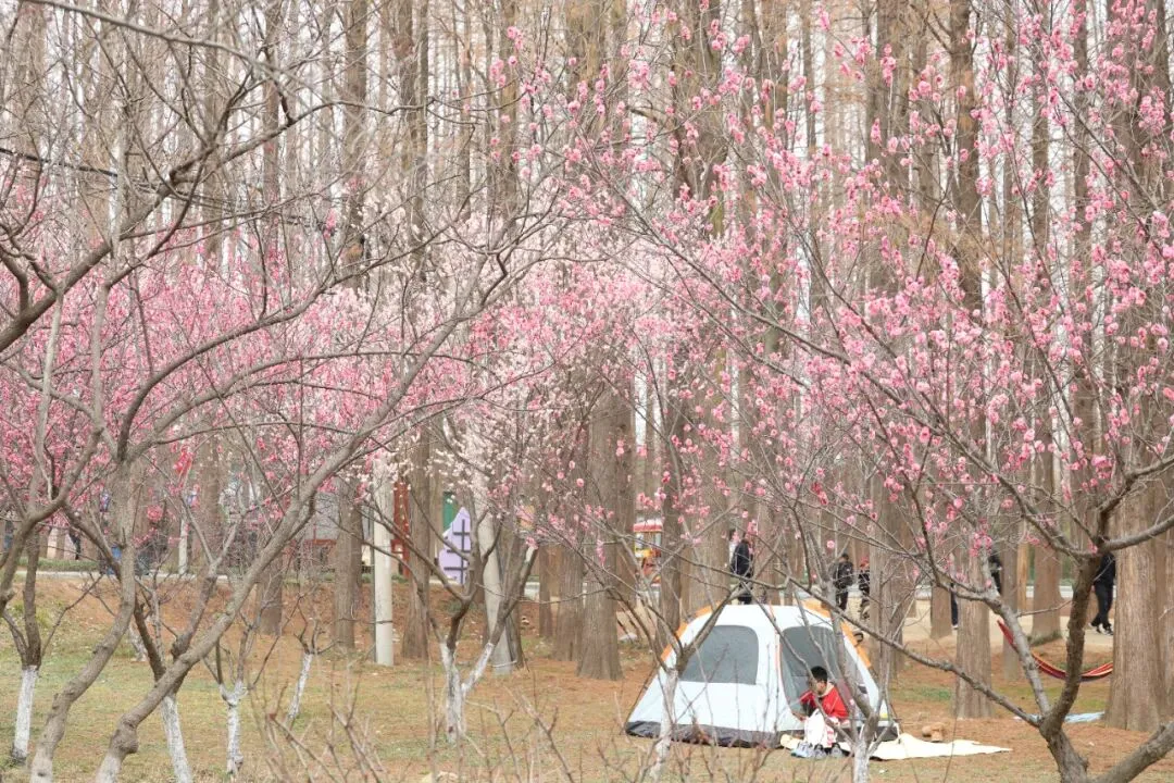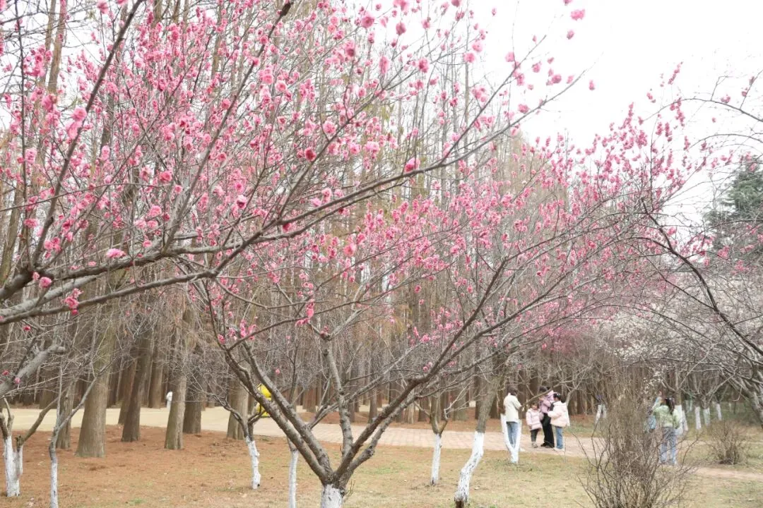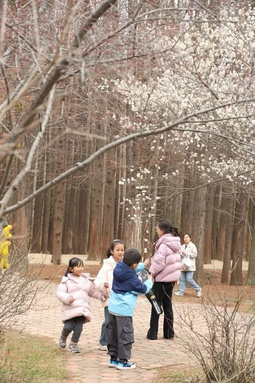 日照海滨国家森林公园内,春意已悄然跃上枝头。从二号门入园,水杉林的层层绿意之间,已然点缀上一抹亮色——公园内的梅花盛开,为市民游客拉开一场春日浪漫序章。