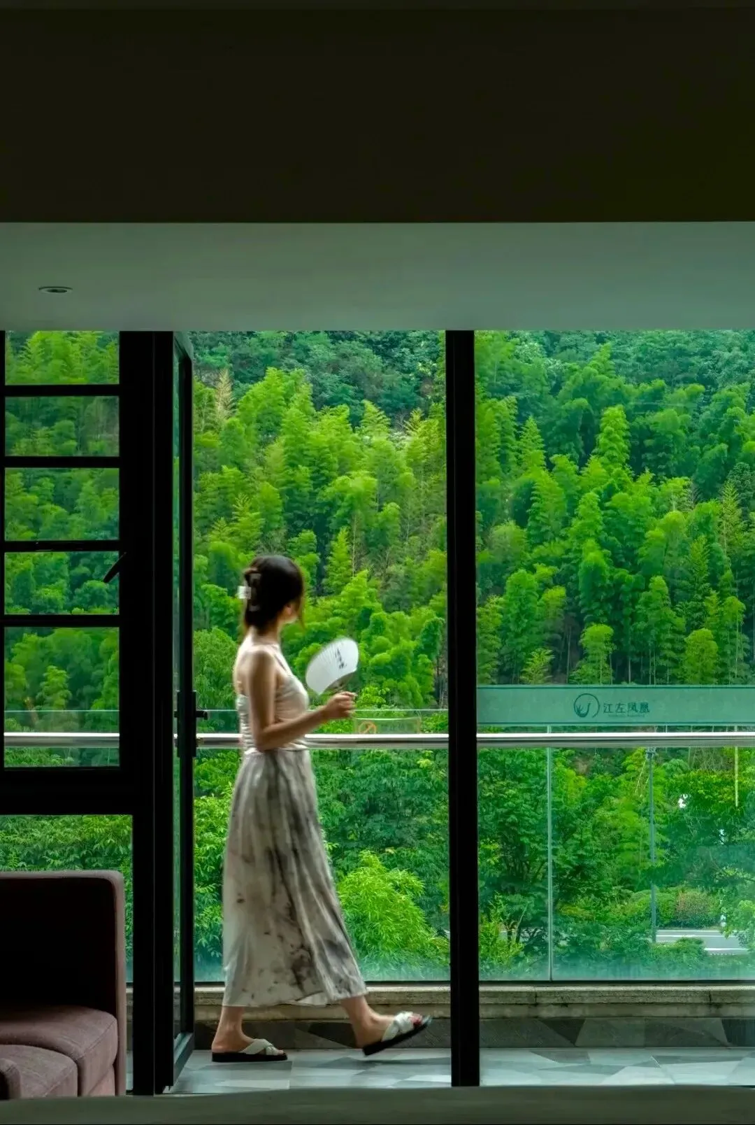 从民宿步行到竹海景区大门口,只需穿过一条马路即可,差不多5分钟。住在这里,无论是在公区,还是客房,都以山和竹,构成了层层叠叠的组合美景,视野之中,满目葱茏,超治愈!