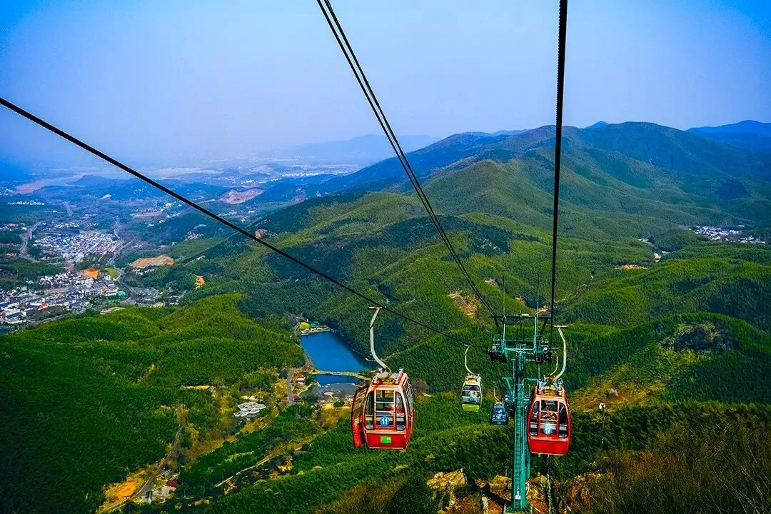 抬眼就能看到竹海景区的缆车。