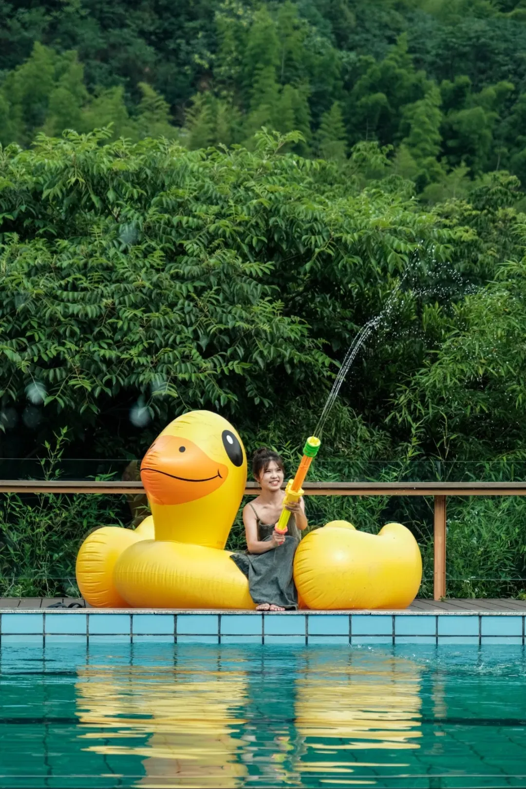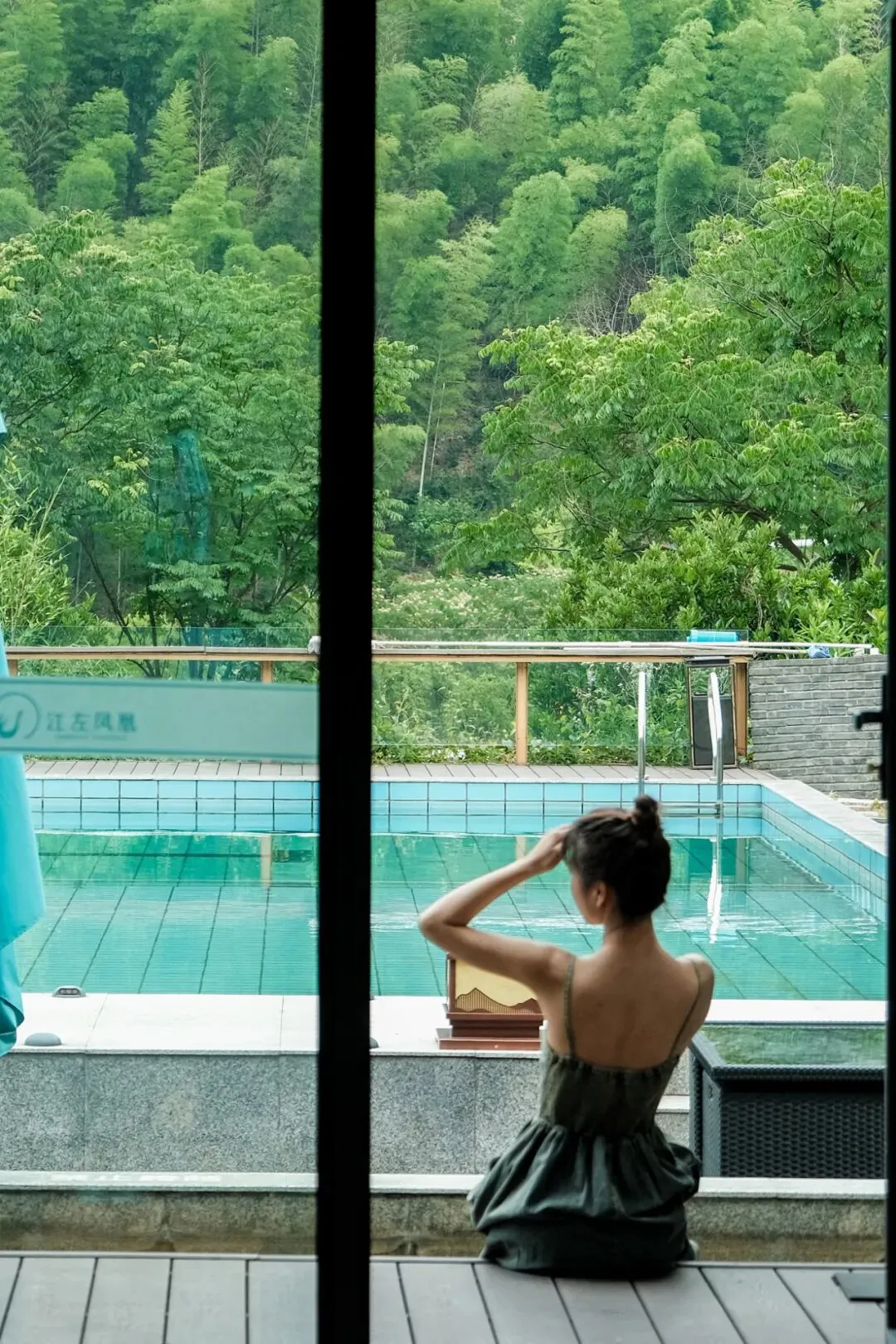 尤其受欢迎的还是户外泳池(长53米,宽5米,深1.7米)和儿童戏水区(长53米,宽4米,深0.3-0.6米)。晨起或傍晚,走到民宿专门打造的竹海观景台上,封面大片随手拍。